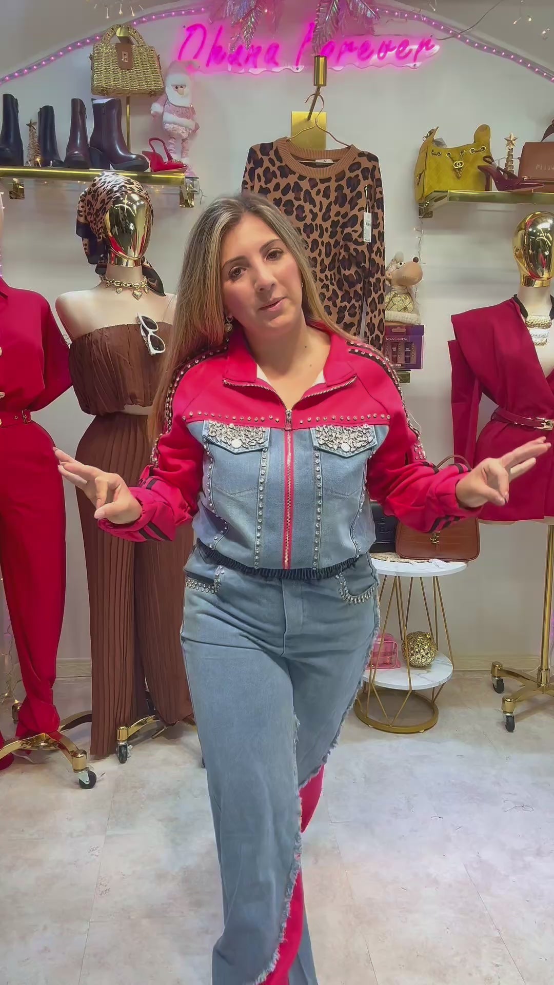 Red Glam Denim Set