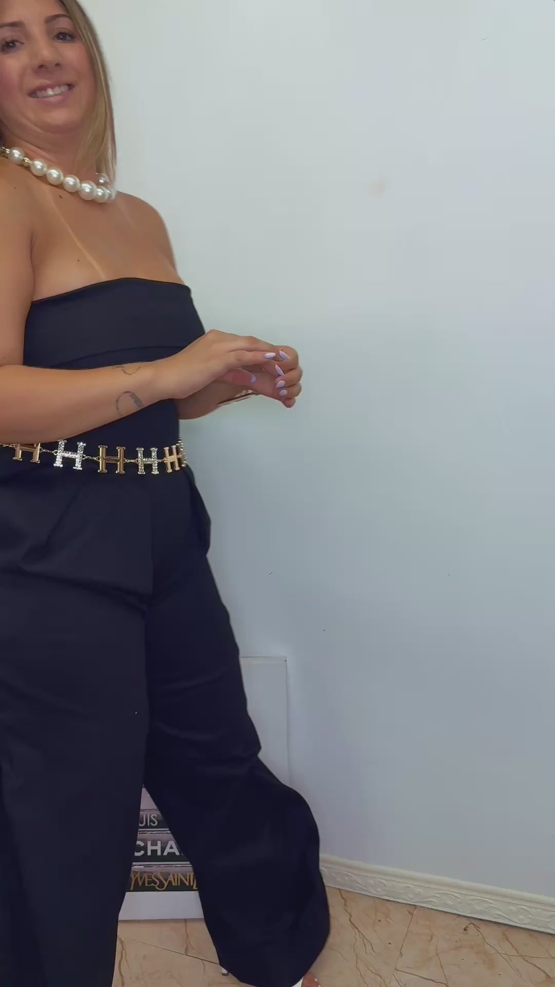 This black strapless jumpsuit is the definition of modern elegance.
